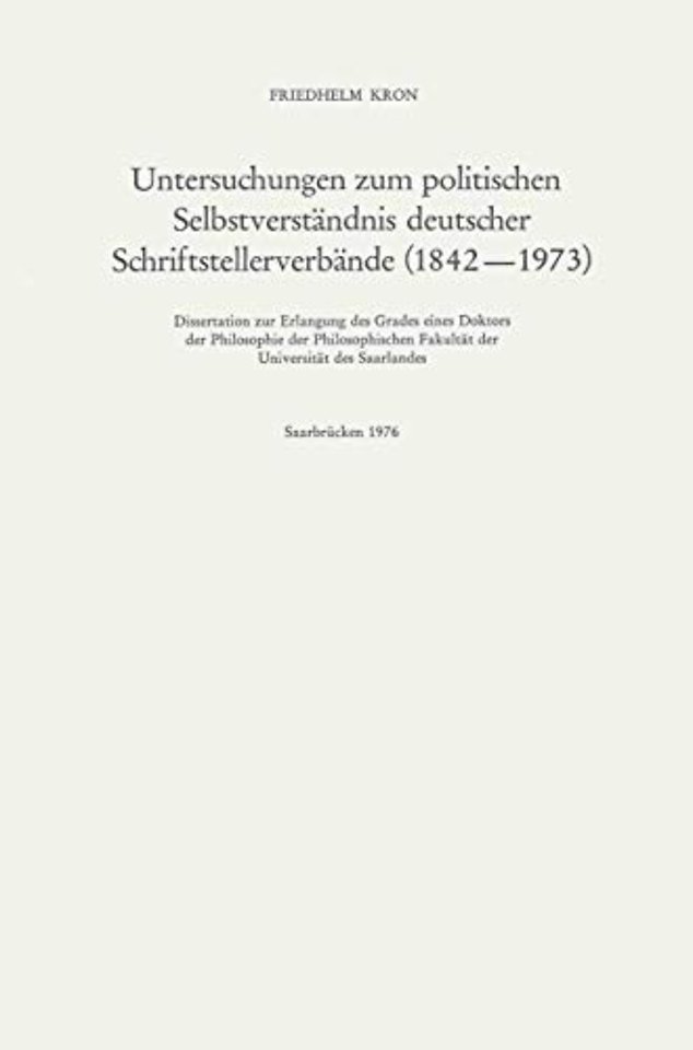 Untersuchungen zum politischen Selbstverständnis deutscher Schriftstellerverbände (1842–1973)