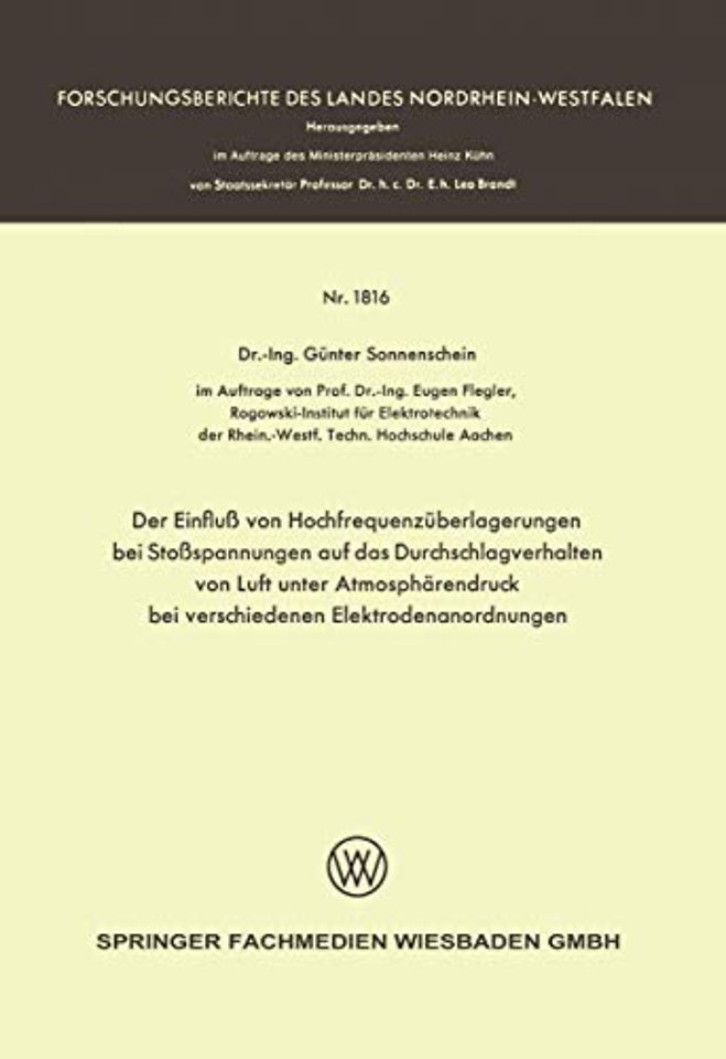 Die elektrische Festigkeit verschiedener Elektrodenanordnungen bei Bean spruchung mit Hochspannung ist schon seit längerer Zeit und in zahlreichen Ar beiten untersucht worden. Die Untersuchungen beschäftigten s.ich vorwiegend mit dem Verhalten von Funkenstrecken gegenüber hohen Gleich- und Stoß spannungen sowie Wechselspannungen verschiedener Frequenzen. In den letzten Jahren wurden auch Untersuchungen über das Durchschlagverhalten verschie dener Elektrodenanordnungen gegenüber hohen Gleichspannungen mit Hoch frequenzüberlagerungen durchgeführt [1, 2]. Hier zeigte sich, daß die Hoch frequenzüberlagerungen auf das Durchschlagverhalten der Luft bei den unter suchten Funkenstrecken einen sehr großen Einfluß haben können. Wie sich Hochfrequenzüberlagerungen bei Stoßspannungen auf das Durchschlag verhalten von Luft bei verschiedenen Funkenstrecken auswirken, darüber ist zur Zeit noch wenig bekannt. So steht zum Beispiel in den Leitsätzen für die Erzeu gung und Verwendung von Stoßspannungen für Prüfzwecke VDE 0450/11. 39, daß geringfügige überlagerte Hochfrequenzschwingungen zulässig sind. Ihr Scheitelwert darf höchstens 5% des Scheitelwertes der Stoßspannung betragen. Bereits bei Funkenstrecken mit weitgehend homogener Verteilung des elektrischen Feldes ist es möglich, daß der Durchschlag bei bestimmten 50%-Durchschlag stoß spannungen öfters erst dann erfolgt, wenn mehrere Mikrosekunden nach Er reichen des Höchstwertes der Stoßspannung vergangen sind. Bei Funkenstrecken, die zum Beispiel eine Spitzenelektrode enthalten, ist das der Regelfall. In diesen Fällen ist nicht nur die Form der Stirn und der Umgebung des Scheitels wichtig. Der zeitliche Verlauf des Rückens kann unter Umständen einen viel entscheiden derenEinfluß auf das Durchschlagverhalten einer Funkenstrecke haben.